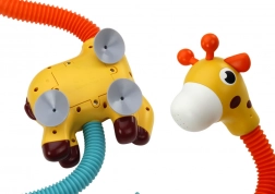 Žirafa ima rotirajući vrat 360°, velike vakuumske čašice za čvrsto pričvršćivanje na glatkim površinama i jednostavno upravljanje gumbom. Konstrukcija i boje prijateljske su djeci, igračka je lagana i lako se montira. Ispunjava norme CE i EN71.