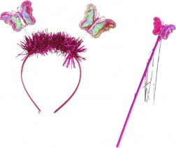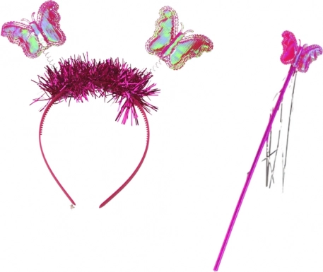 Dio seta je ružičasta rajf-traka za kosu s preslatkim leptir ušima, koja dječjoj glavici daje poseban dašak šarma i elegancije. Zahvaljujući štapiću od sjajnog materijala dijete se osjeća kao prava vila koja izvodi čarobne čini i ispunjava želje.