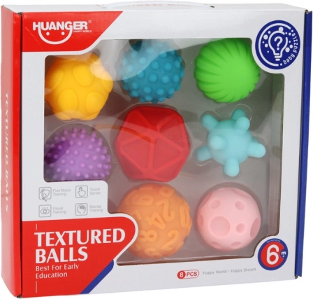 Izrađene od mekog i sigurnog materijala, loptice su idealne za hvatanje, bacanje i kotrljanje. Njihove raznolike teksture omogućuju djeci otkrivanje razlika između glatkih i grubih površina te učenje kroz igru.