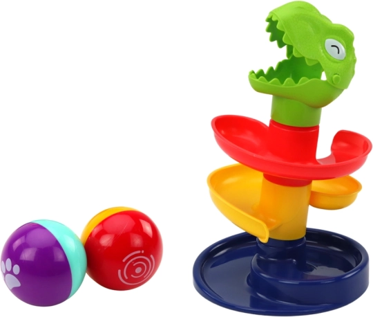 Edukativni tobogan za kuglice Zeleni dinosaurus idealan je izbor za razvoj dječjih vještina i njihov prvi susret s fizikom. Sastoji se od 4 šarene razine, pri čemu najviši dio čini zelena zmajeva glava, koja donosi element igre i mašte.