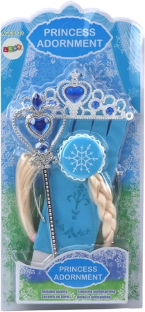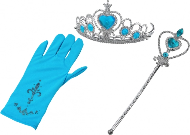 Pretvorite svoje dijete u pravu princezu s našim setom dodataka za malu princezu, koji sadrži sjajnu plavu rukavicu, čarobni štapić i krunu ukrašenu plavim dijamantima.