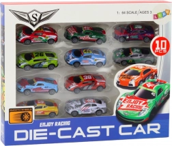 Ovaj set uključuje deset malih trkaćih autića, idealnih za kreativnu igru i zabavu. Svaki model je dizajniran u sportskom stilu i ima samostalne kotače koji dodaju još više akcije u igru. Ovo je sjajna igračka za razvoj mašte i kreativnosti kod djece, omogućujući im vlastite utrke.