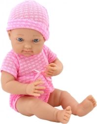 Slatka bebina lutka u ružičastoj odjeći s kapicom, s dudom na vrpci i mekanom dekicom. Ima pokretne ruke i noge, realistične crte lica i izrađena je od sigurnih materijala koji udovoljavaju standardima CE i EN71. Prikladna za djecu od 18 mjeseci.