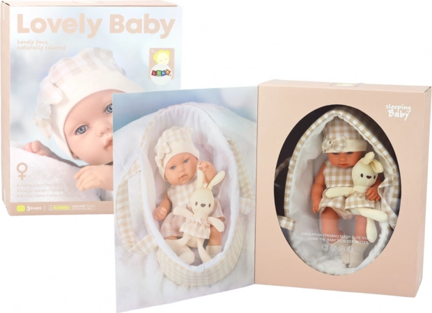 Ova realistična lutka s mekim tjelešcem idealna je za vježbanje brige i razvoj empatije. Djeca će zavoljeti nježnu odjeću u bež-bijelom kariranom uzorku s kapicom i čarapicama te slatkog plišanog zečića kojeg beba može grliti. Zahvaljujući pokretnim udovima lako je stvarati najrazličitije scenarije igre.