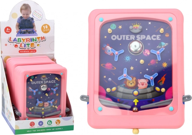 Zabavna društvena igra fliper u ružičastoj izvedbi donosi sate uzbuđenja za male i velike. Kontrolirajte poluge, pogađajte mete i poboljšavajte svoj rezultat. Igra potiče spretnost, reflekse i koncentraciju, opremljena je CE certifikatom i odgovara normi EN71. Prikladno za djecu od 3 godine naviše.