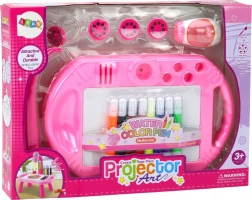 U pakiranju je sve što malim umjetnicima treba: 4 slajda s ukupno 32 slike, 8 kolor flomastera i bilježnica za njihove prve radove. Igračka je sigurna, posjeduje CE certifikaciju i ispunjava normu EN71. Savršen izbor za poticanje kreativnosti, koncentracije i radosti stvaranja.