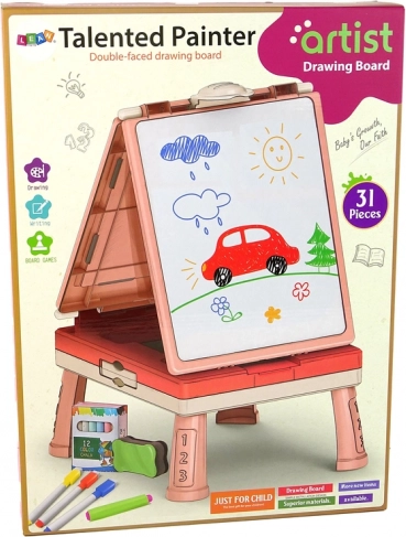 Višenamjenska dječja ploča 3u1 spaja kreativno crtanje i zabavno učenje u jednom. Nudi dvostranu površinu za kredu i flomastere, praktičan stolić te integrirane društvene igre poput „Čovječe, ne ljuti se” i Zmije i ljestve. Izvrsna je za razvoj kreativnosti, fine motorike i logičkog razmišljanja djece od 3 godine.
