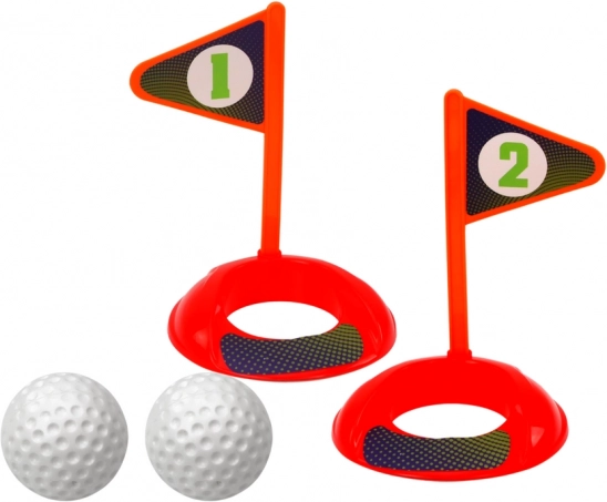 Tri različita štapa s raznobojnim glavama omogućuju raznolikost u igri i prilagodbu vještinama djeteta. Također su uključene dvije rupe i dvije zastavice za realno golf igralište.