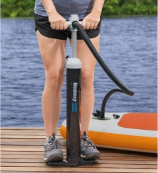 Pouzdana i brza pomoć kada trebate imati tlak pod kontrolom. Ova visokotlačna ručna pumpa s manometrom osigurava udobno i precizno napuhavanje svega od SUP dasaka i pontona do napuhljivih madraca i sportskih lopti. Zahvaljujući čitljivom pokazivaču lako postižete preporučeni tlak i štitite svoju opremu od podnapuhavanja ili prenapuhavanja.