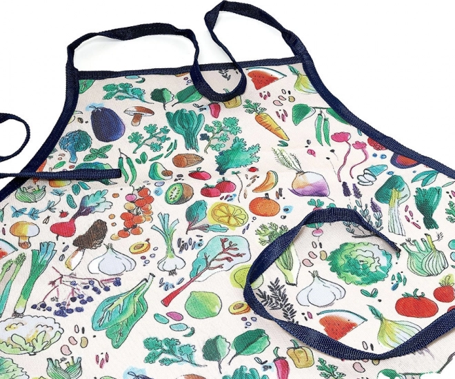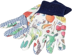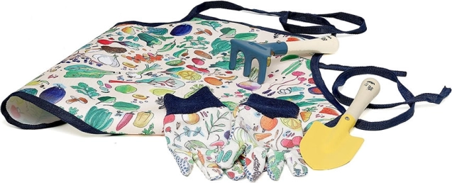 Šareni uzorci na pregači i rukavicama čine vrtlarenje radosnom aktivnošću.