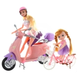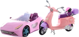 Ružičasti automobil (33 cm), realistični skuter (30 cm) i bicikl (17 cm) omogućuju lutkama izlete, vožnju gradom i odlazak u park. Lako se upravljaju i potiču dinamičnu igru.