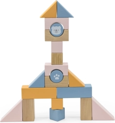 20 kockica u raznim pastelnim bojama i oblicima podržava kreativno slaganje i razvoj ručnih vještina.
