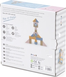 Drveni vučni vagon VIGA PolarB opremljen je s 20 kockica u pastelim bojama koje nude mogućnost slaganja fantastičnih građevina zahvaljujući različitim oblicima i otiscima. Vagon je dizajniran tako da djeca lako razvijaju svoje motoričke vještine i kreativnost. Tijekom igre djeca se uče koordinirati svoje pokrete i usredotočiti na zadatke.