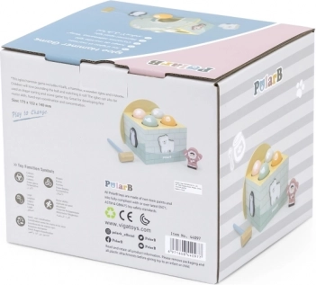 Dječja igračka Igloo brenda Viga izvrsna je opcija za mališane. Ova svestrana igračka kombinira nekoliko aktivnosti: udaranje loptica čekićem, sorter oblika i mogućnost igre s figuricama. Djeca kroz igru razvijaju finu motoriku ruku, bolju koordinaciju te postupno i vještine poput pisanja. Loptice nakon uspješnog udarca čekićem izlete iz iglua kroz mala vratašca. Ako je potreban pristup unutrašnjosti iglua, prednju ploču moguće je skinuti.