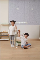 Izrađen od kvalitetnog drva, ovaj štand je izdržljiv i siguran za djecu, što osigurava dugotrajnu upotrebu.