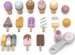 Štand sadrži razne vrste drvenih sladoleda koji omogućuju djeci stvaranje vlastitih sladolednih kombinacija.