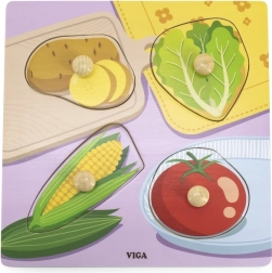 Viga drvene puzzle s povrćem izvrstan su alat za učenje kroz igru od 12 mjeseci nadalje. Puzzle su dizajnirane da potiču koordinaciju ruku i očiju te razvijaju pamćenje i logičko razmišljanje. Zahvaljujući gumbićima na pojedinim dijelovima, djeca lako umeću dijelove povrća u odgovarajuće otvore.