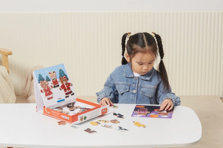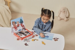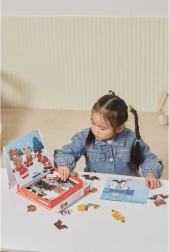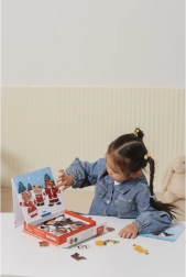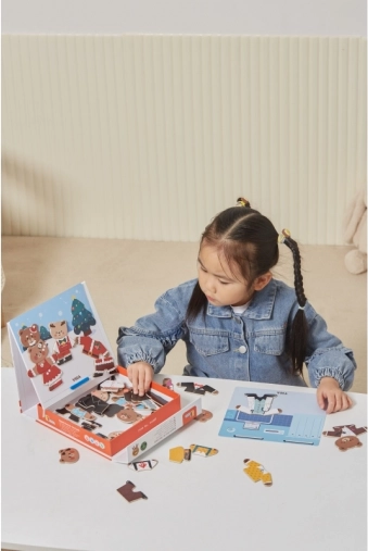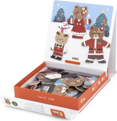 Ovaj kreativni set donosi omiljenu drvenu magnetsku igru oblačenja s motivom medvjeđe obitelji. Djeca mogu slagati različite outfite i izraze lica, iskušavati profesije i svakodnevne situacije te stvarati vlastite priče. 54 magnetska dijela nude mnoštvo kombinacija za sate zabave.