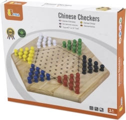 Kineske dame su popularna varijanta igre halma, u kojoj je cilj premjestiti sve svoje figurice u suprotni vrh zvijezde. Drvena ploča s pravilnim otvorima i obojeni čavlići omogućuju ugodnu i preglednu igru za djecu i odrasle.