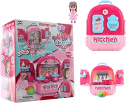 Prekrasan veliki set posuđa u ruksaku, idealan za male kuharice. Ova multifunkcionalna igračka može poslužiti kao kuhinjski set, set za igru s lutkom ili praktičan ruksak.