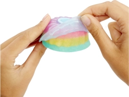 Pretvori igru u slatko slavlje! Djeca pomiješaju šarene smjese s vodom, napune kalup i u trenu izrade haljinu u obliku rođendanske torte. Zatim je samo izvaditi, ukrasiti šljokicama, odjenuti lutku i započeti priču punu mašte.