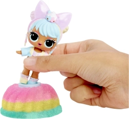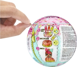 U pakiranju ćeš pronaći lutku, 3 obojene smjese, kalup za haljinu u obliku torte, odjeću, dodatke i šljokice za završni efekt. Kolekcionarska serija sadrži 9 likova (npr. NEON Q.T., BON BON, ICE SK8R, SUPER B.B.). Različite varijante – šaljemo nasumično, cijena vrijedi za 1 kom.