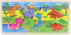 Otkrijte svijet dinosaura s kvalitetnim drvenim puzzlama koje djeca lako slažu izravno na priloženoj ploči s čvrstim okvirom. Zahvaljujući podlozi, dijelovi bolje ostaju na mjestu, a slaganje je pregledno i za početnike.