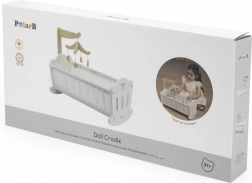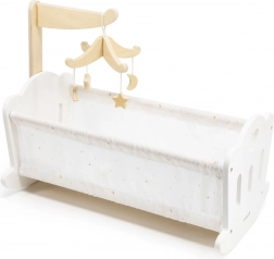 Drvena kolijevka za lutke PolarB spaja bezvremenski dizajn, kvalitetnu izradu i nježne tekstile s tiskom zvjezdica i mjesečića. Integrirani drveni vrtuljak s visećim oblicima daje igri čaroliju i pomaže djeci razvijati odnos prema njezi i umirujućim ritualima.