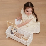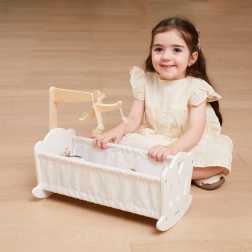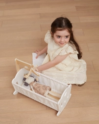 Zahvaljujući čvrstim drvenim dijelovima i priloženom jastučiću s poplunom stvorit ćete za lutku ugodno mjesto za odmor. Kolijevka je savršena za dječju sobu te izvrsno potiče socijalne vještine, maštu kao i finu i grubu motoriku.