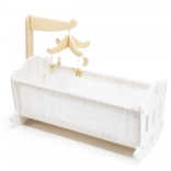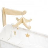 Viseći drveni vrtuljak donosi vizualne podražaje i daje kolijevci čarobnu atmosferu za umirujuće rituale prije spavanja lutke.