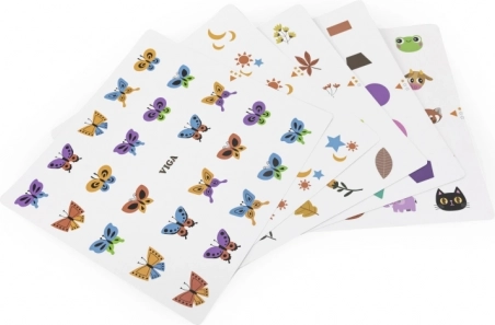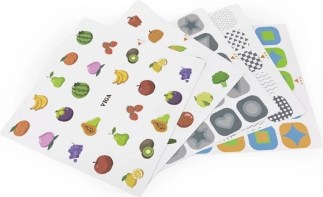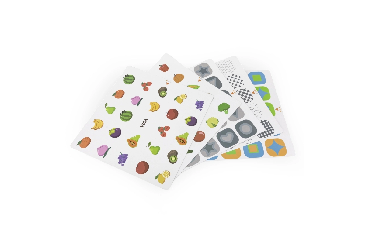 Šarene kartice s motivima oblika, voća i životinja omogućuju prilagodbu težine te uče djecu prepoznavanju i razvrstavanju.