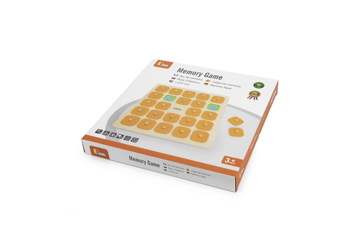 Velika Montessori Viga memorijska igra idealna je za zajedničke obiteljske trenutke i učenje u vrtiću. Djeca podižu drvene poklopce s hvataljkama, zapamte sličicu i traže njezin par – jednostavno pravilo koje izvrsno jača logičko razmišljanje, vizualno pamćenje i pažnju.