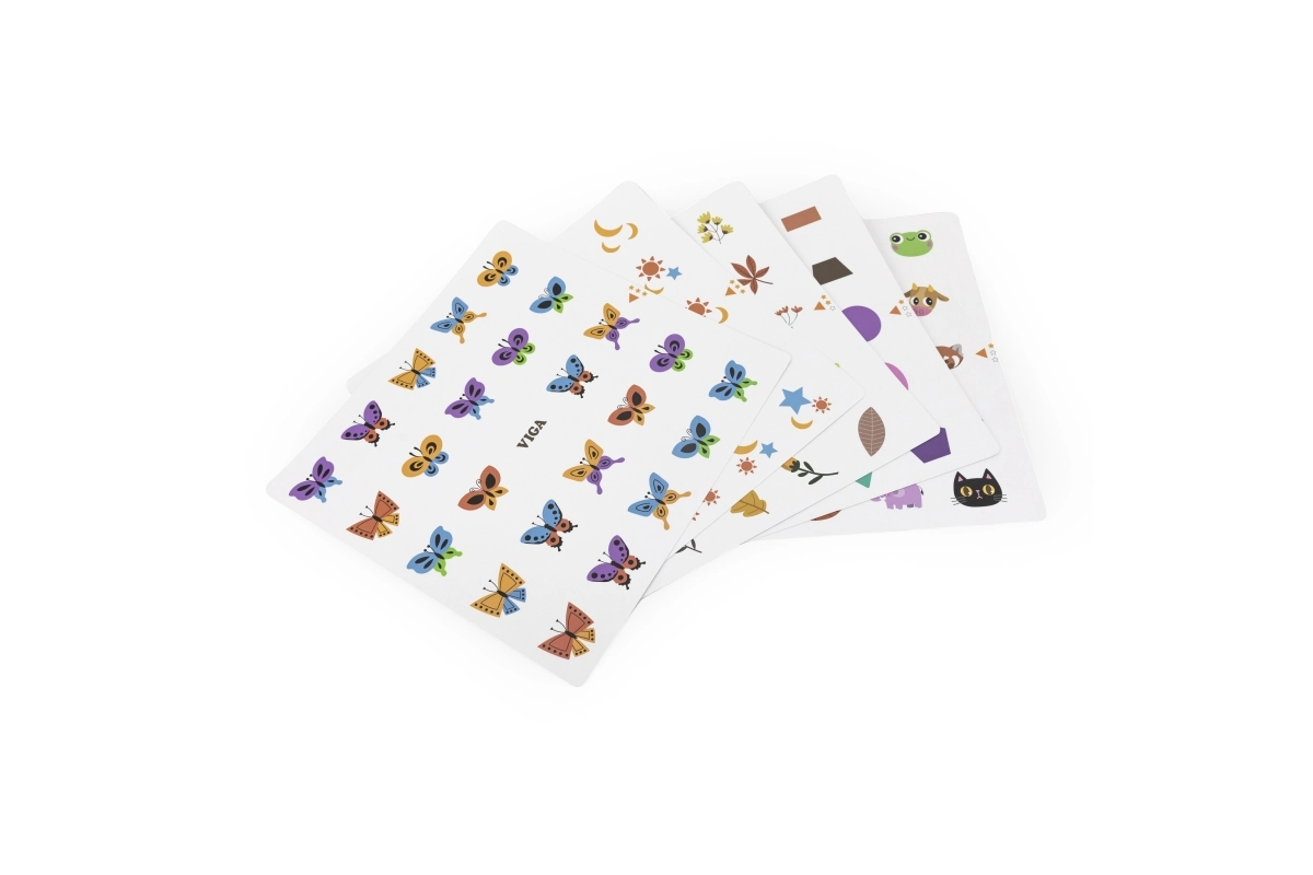 Dio seta su zamjenjive kartice s motivima boja, životinja, oblika, voća i povrća, pa igru lako prilagodite dobi i sposobnostima djeteta. Sigurna izrada od kvalitetnog drva i netoksični premazi jamče pouzdanost i izdržljivost pri svakodnevnoj upotrebi.