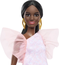 Stilizirana lutka BARBIE Model u ružičastoj haljini s napuhanim rukavima donosi beskrajne mogućnosti kreativne igre. Zahvaljujući modernom outfitu, upečatljivim zlatnim naušnicama i plavim cipelama idealna je za modno stiliziranje, pričanje priča i razvoj dječje mašte. Lutka je dio kolekcije koja slavi raznolikost tonova kože, kose i stilova. Prikladno za djecu od 3 godine.