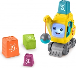 Igračka je dizajnirana za podršku fine motorike i koordinacije oka i ruke kroz manipulaciju šarenim blokovima i dizalicom.