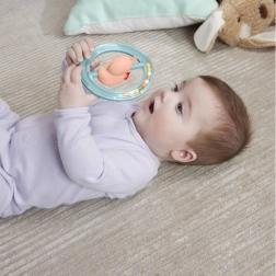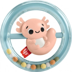 Rotirajući axolotl u prozirnom prstenu s zveckavim perlicama za vizualnu i slušnu stimulaciju.