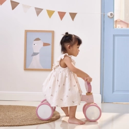 Čvrsto drvo, glatki i zaobljeni rubovi te neškodljive boje čine guralo izdržljivim i sigurnim izborom za prve vožnje.