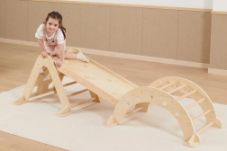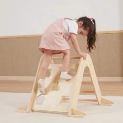 Ovaj Piklerov trokut je promišljena drvena penjalica za svakodnevno kretanje kod kuće. Djeca mogu sigurno penjati se, prelaziti i provlačiti se, vježbati hvat i otkrivati svoje mogućnosti u duhu montessori pristupa. Obostrano izvedenje – s jedne strane klasične ljestve, s druge penjačka ploča s otvorima – donosi raznoliki izazov za početnike i iskusnije penjače.