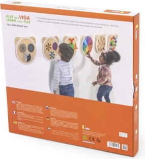Ova zidna edukativna ploča Viga u obliku simpatične medvjediće glave spaja zabavu i učenje. Okretnom pločom navodite čeličnu kuglicu kroz utore tako da postupno dođe do svake znamenke od 0 do 9. Djeca prirodno vježbaju brojanje, strpljenje i rješavanje problema.