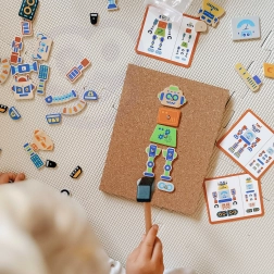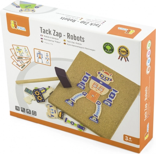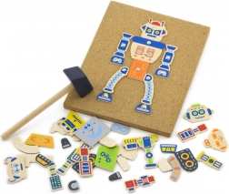 Otkrijte zabavnu i edukativnu igru za male graditelje – drvenu čekićanku VIGA s temom robota. Set sadrži 45 šarenih drvenih dijelova, plutenu ploču, drveni čekić, pričvrsne čavliće i kartice s predlošcima. Djeca razvijaju finu motoriku, logičko razmišljanje, koncentraciju i kreativnost dok pričvršćuju oblike na ploču po mašti ili prema uzorcima.