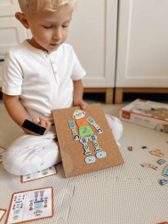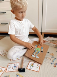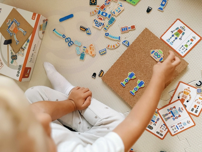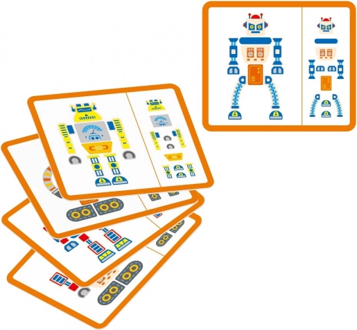 Kartice s 10 uzoraka pomažu započeti, ali prava zabava dolazi s slobodnim stvaranjem. Djeca slažu vlastite robote i vježbaju maštu i planiranje.