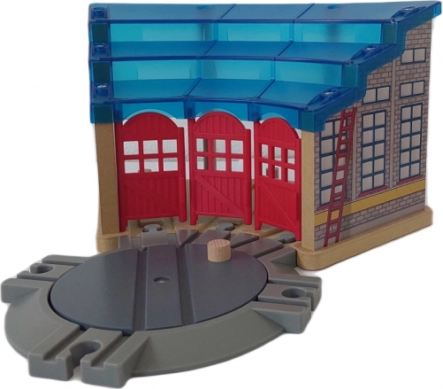 Veliko depo koje pruža dom i zaleđe za čak tri lokomotive ili vagone. Toplina i mir u njemu daju im snagu za duge vožnje križem‑kražem željeznicama. Dvokatni krov omogućuje vam savršen pristup svim parkiranim lokomotivama koje treba popraviti ili samo očistiti i pripremiti za sljedeće putovanje. Ovo depo ima vlastitu okretaljku koja lokomotivama nudi veliku udobnost pri ulasku i okretanju vagona i lokomotiva. Sadrži depo i okretaljku. Dimenzije depoa uključujući okretaljku: 34×34 cm, visina 18 cm, promjer okretaljke 18 cm. Dimenzije pakiranja: 31×21×20 cm. Vlakovi i dodaci Maxim mogu se kombinirati sa svim ostalim drvenim željezničkim setovima na tržištu. Za djecu od 3 godine.