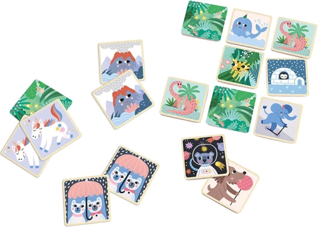 Vilac Drveno pexeso idealno je za djecu koja vole šarene ilustracije i zabavne igre. Ove igraće kartice, koje su savršeno prilagođene za male dječje ruke, pomažu razvijati rječnik, memoriju i osjećaj za opažanje.