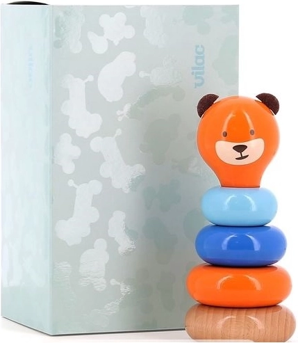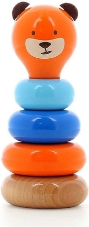 Ova drvena tornjić za slaganjem s motivom medvjeda idealna je za razvijanje fine motorike vaše djece. Izrađena od kvalitetnog lakiranog masivnog drva, njezin šareni dizajn privući će i najmlađe dječje entuzijaste.