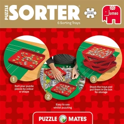 Praktičan set posudica za slagalice olakšava red tijekom slaganja – sadrži 6 plastičnih zdjelica u crvenoj boji dimenzija 20 × 20 cm, koje su slagive i nakon rada ih zajedno s dijelovima lako pospremite natrag u kutiju.