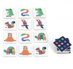 Uđite u dugini svijet pun kitova, vjeverica i plamenaca. Ovo pexeso se ističe kvalitetnom drvenom izradom i upadljivim ilustracijama koje odmah zaokupe dječju pažnju. Igra prirodno potiče vježbanje pamćenja, proširuje rječnik te jača koncentraciju i uočavanje detalja.