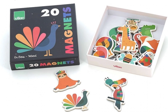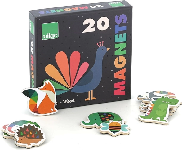 Set veselih magnetića s motivima duginih životinjica (slon, lisica, tukan i drugi) unijet će boje i radost u dječju sobu. Zahvaljujući kvalitetnoj drvenoj izradi izvrsni su za svakodnevnu igru i kao dekoracija na hladnjaku ili magnetskoj ploči.