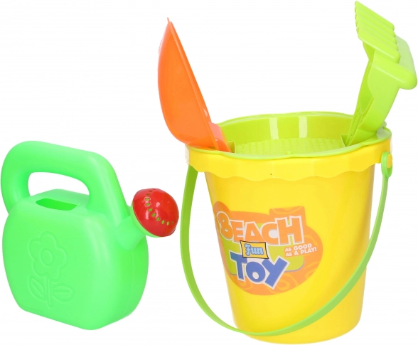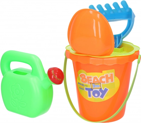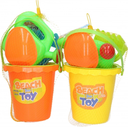 Praktičan dječji set za pijesak veličine 15 cm sadrži sve što mali graditelji trebaju: kanticu, sito, zalijevaču, grablje i lopaticu. Dostupne su 2 varijante boja – žuta i narančasta. Odlično za igralište, plažu i vrt.