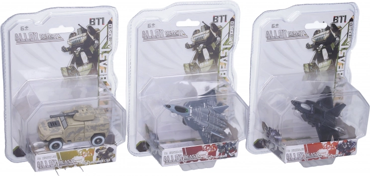Zabavni metalni autorobot duljine 11 cm koji će razveseliti male ljubitelje vojne tehnike. Dostupan u 4 varijante – svijetli lovac, tamni lovac, tenk i vojno vozilo. Izdržljiva metalna izrada osigurava dug vijek trajanja i sjajnu igrivost.