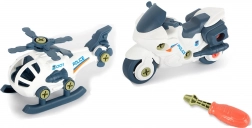 Otkrijte svijet prijevoznih sredstava s ovim kreativnim i interaktivnim setom za vijčanje. Pakiranje sadrži tri modela: helikopter, motocikl i odvijač, s kojima se djeca mogu istovremeno igrati i učiti.